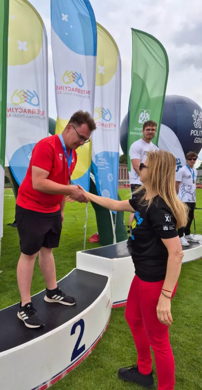Reprezentacja sekcji osób z niepełnosprawnościami KU AZS PŁ w składzie: Anna Banachowicz WFTIMS, Agata Skalska WCH, Barnaba Farski WFTIMS, Hubert Krokowicz WBAIS, Piotr Pietrzak WEEIA, Sebastain Świderek WFTIMS oraz Mateusz Wójcik WEEIA w dniach 6-8 czerwca 2025r uczestniczyła w Integracyjnych Mistrzostwach Polski AZS w lekkoatletyce, które odbywały się w Gdańsku.